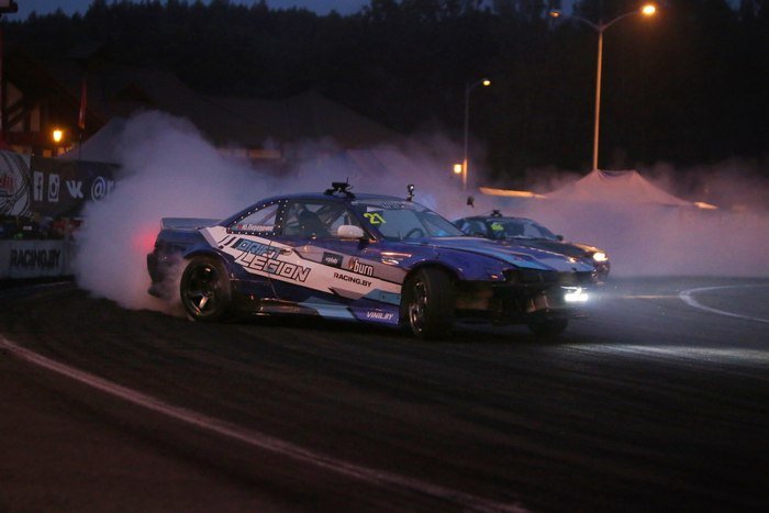 Финальные заезды ТОП16ДЕ начинаются в 20.00, а заканчиваются уже в темное время суток - именно поэтому Дрифт Логойск называется ночной гонкой.