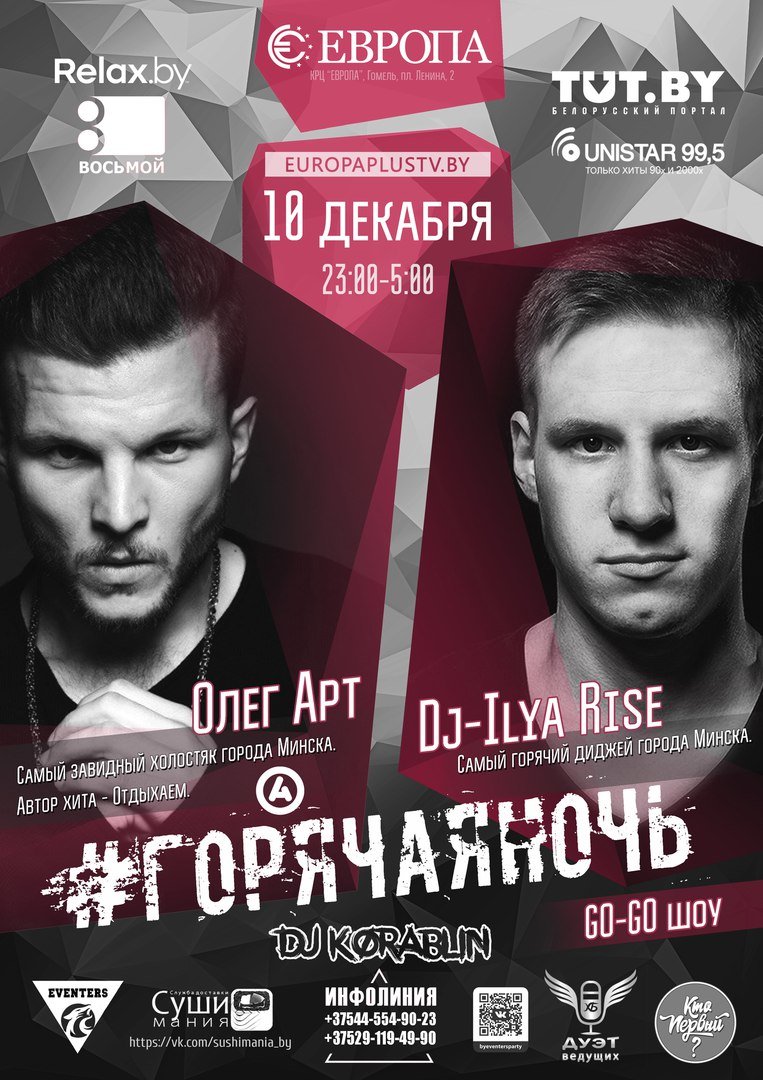 10 Декабря! Серия вечеринок #ГОРЯЧАЯНОЧЬ в КРЦ "Европа" пл. Ленина 2 г. Гомель.