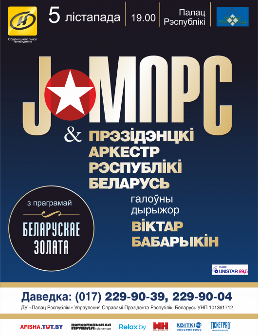 5 ноября во Дворце Республики группа «J:МОРС» и Президентский оркестр Республики Беларусь представят совместный проект. В рамках специальной программы «Беларускае золата» музыканты двух коллективов вместе исполнят лучшие песни «J:МОРС» в симфонических аранжировках.