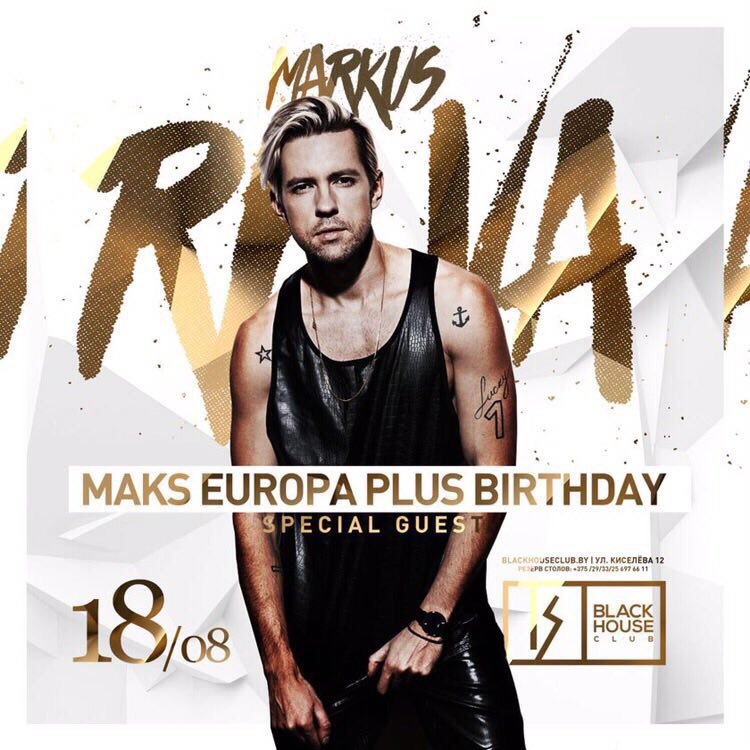 18 августа Black House Club - Birthday party @max1mka_europaplus! Большой сольный концерт невероятно харизматичного певеца - Маркуса Рива!