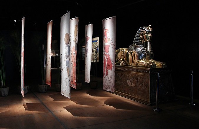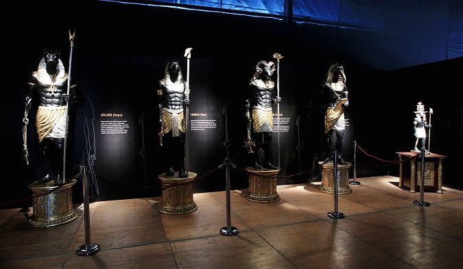 Созданная совместно с музеями по всему миру, экспозиция включает более 300 экспонатов, среди которых есть ряд подлинников и копии, в том числе саркофаги, амулеты и папирусы, созданные в соответствии с технологиями того времени.