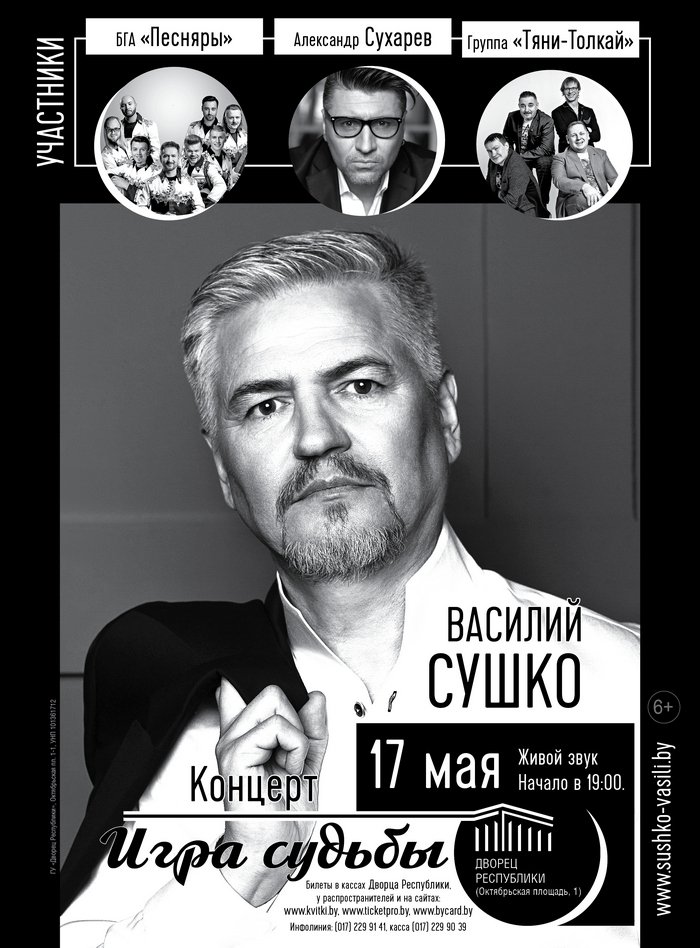 17 мая 2019 года в 19.00 во Дворце Республики (г. Минск, пл. Октябрьская, 1-1) автор и исполнитель песен Василий Сушко представит новую сольную программу «Игра судьбы…», посвященную своей малой родине.