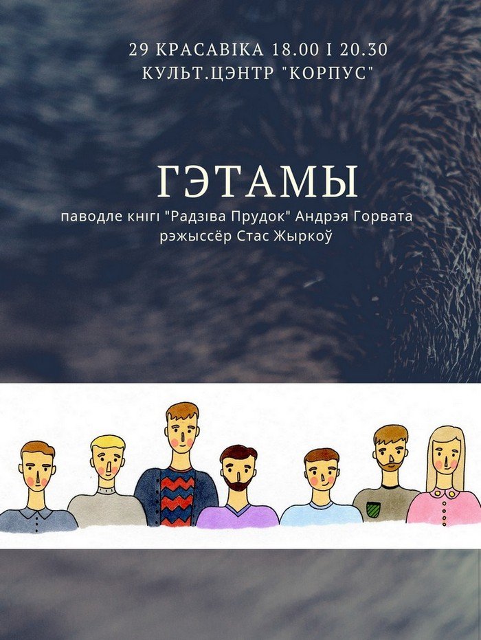 29 апреля в культурном центре «Корпус» состоится показ спектакля «Гэтамы» по книге Андрея Горвата «Радзіва Прудок». Новую постановку осуществил украинский режиссер, художественный руководитель Киевского театра на левом берегу Днепра Стас Жирков, в ролях – молодой дрим-тим из различных минских театров.