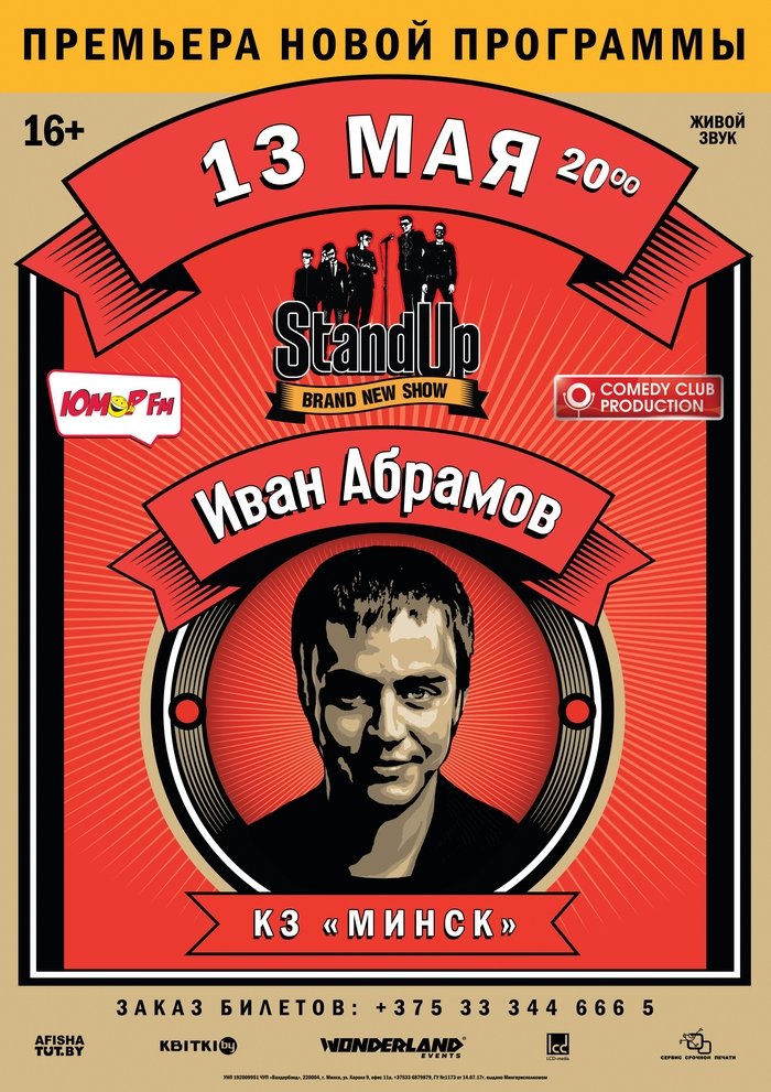 Самый интеллигентный резидент Stand Up на ТНТ привезет в Минск новую программу. 13 мая Иван Абрамов выйдет на сцену Концертного зала Минск, чтобы удивить зрителей новыми шутками и музыкальными номерами.