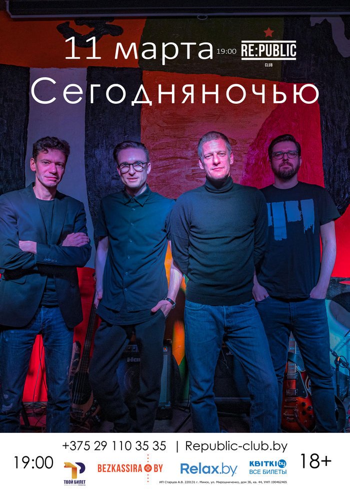 Группа "Сегодняночью" - коллектив из Санкт-Петербурга, существующий с 2001 года. Дебютный альбом "Кофе и Сигареты" был записан при участии саунд-продюсера Ильи Лагутенко. Композиции с него, "Герда, икай", "Не удержаться" и "Сигареты и кофе", занимали первые строчки хит-парадов музыкальных каналов и радиостанций.