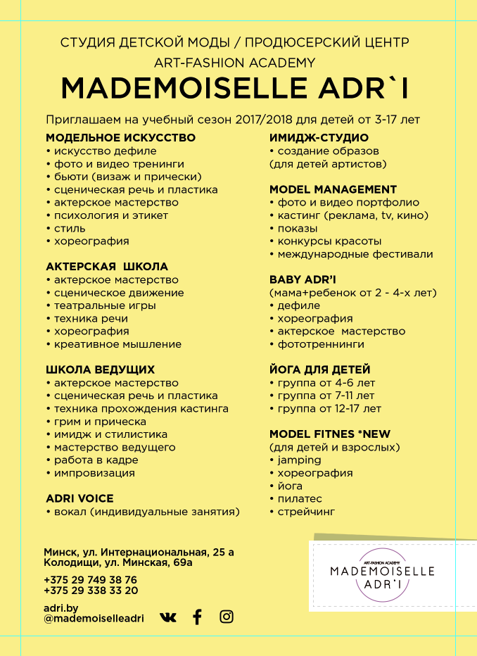 Аrt-Fashion Асаdemy "MADEMOISELLE ADR`I" открывает набор на новый учебный сезон 2017/2018 для девочек и мальчиков от 3 до 17 лет!